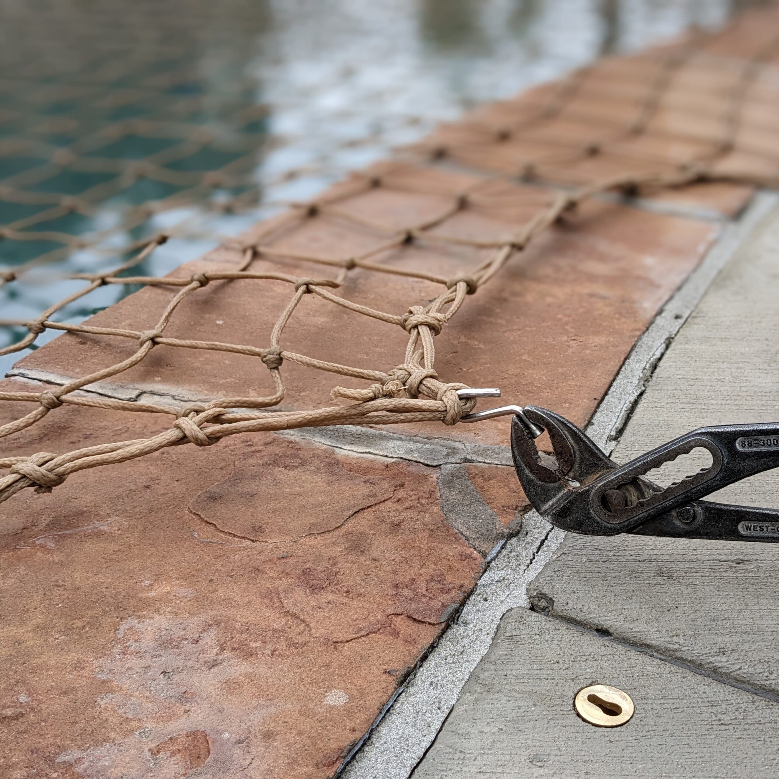 - Crimp the clip head securely with Channellock pliers to attach it to the net material.