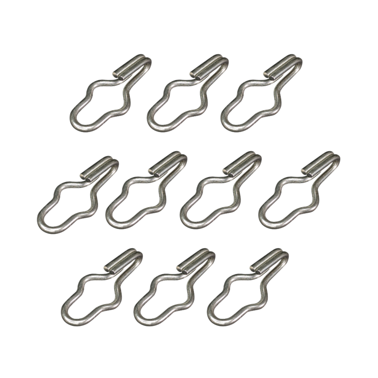 These Pear Loop Clips are the recommended connection method for attaching pool safety nets and winter covers to threaded brass anchors, whether installed on wood decks or concrete decks. Their pear-shaped profile provides a smoother engagement, reduced cord wear, and a secure hold during tensioning—making them ideal for safety net systems.